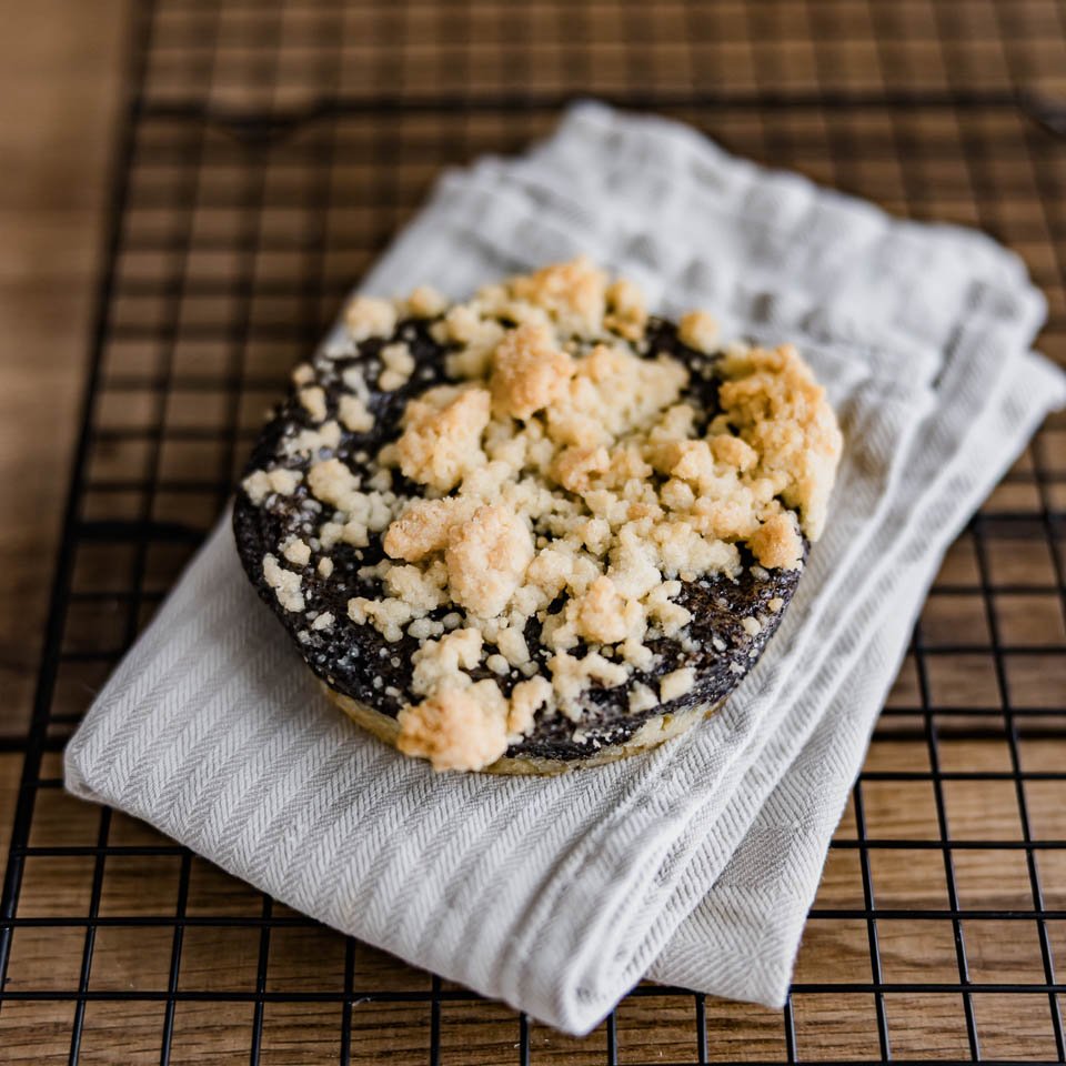 Mohn, Rohrohrzucker, Milch, Dinkelmehl Typ 630, Butter, Maisstärke, Weizenpuder, Ei, Guarkernmehl, Johannisbrotkernmehl, Vanillearoma, Weinsteinbackpulver, Steinsalz, Zimt