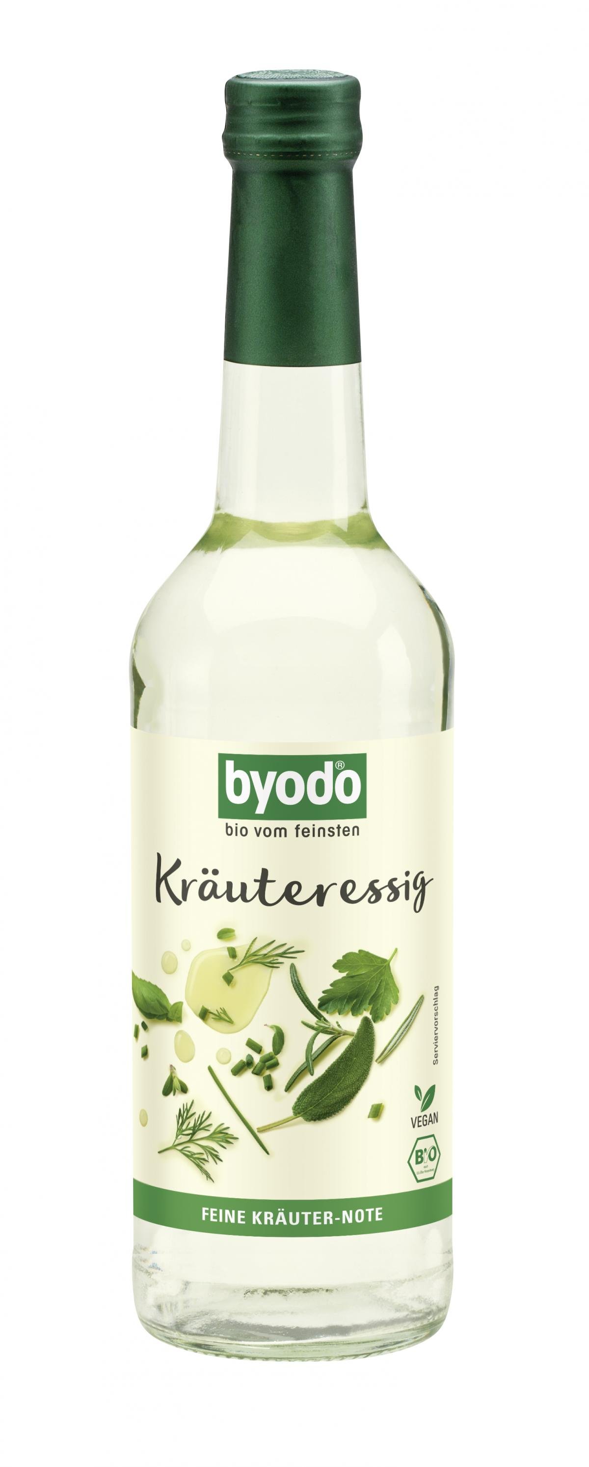 Der Byodo Kräuteressig passt mit seiner klaren Farbe und dem intensiven Kräutergeschmack wunderbar zu Rohkostsalaten, veredelt aber auch z.B. Kartoffelsalat und -Wurstsalat auf das Feinste.